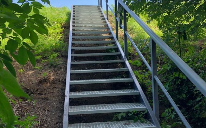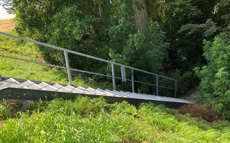 Wij realiseerde een GVK taludtrap ten behoeve van veilig afdalen en stijgen langs een talud. De trap is toegepast in een buitenomgeving waar duurzaamheid, veiligheid en onderhoudsarme materialen essentieel zijn.